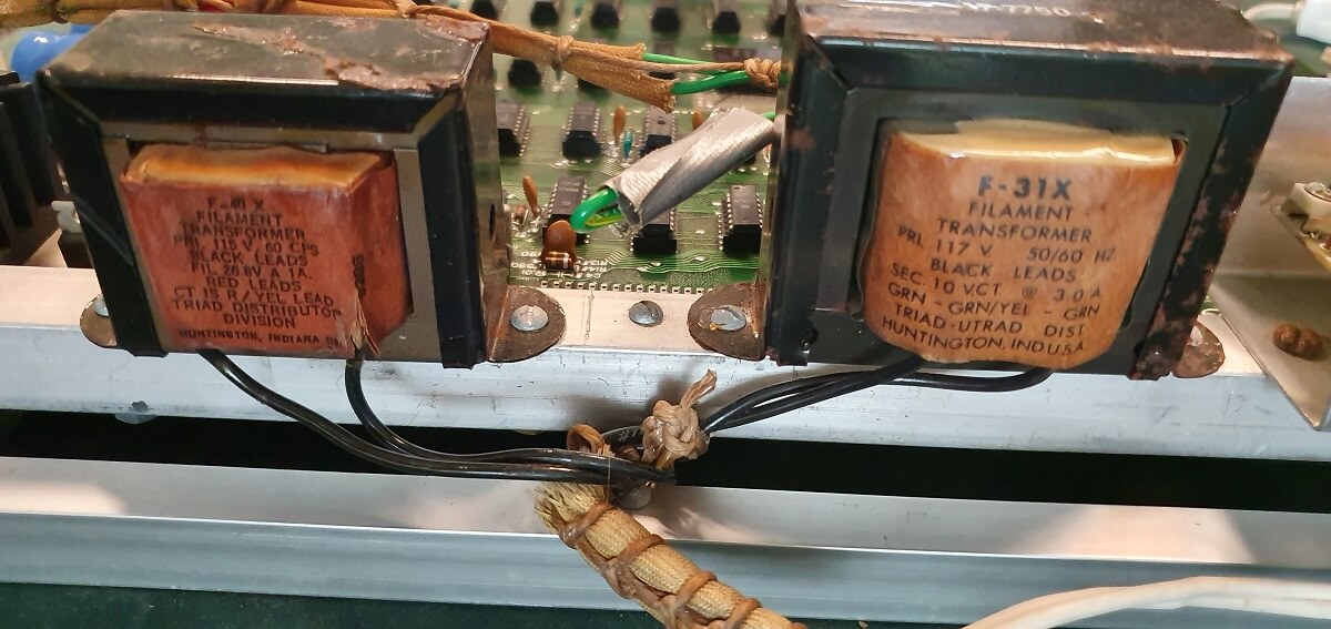 Original Apple Cassette Interface. Transformers TRIAD F-31X and F-40X from 1977. Mounted on a metal frame. Keyboard from 1977.